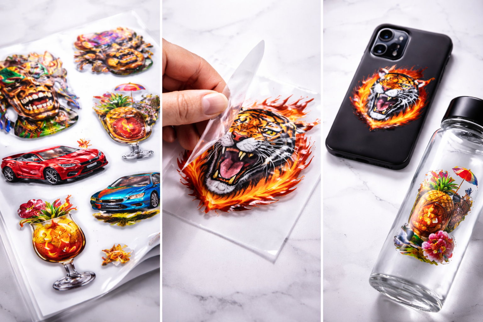 A UV DTF technológia az UV-fényre kötő festéket és az öntapadós fóliatechnológiát ötvözi, hogy részletgazdag matricákat hozzon létre, amelyek megjelenésükben és tapintásukban a szitanyomásra emlékeztetnek – hosszadalmas előkészítés vagy szerszámköltség nélkül.